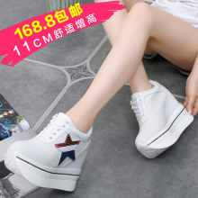 坡跟松糕休闲内增高运动鞋女厚底系带单鞋白色旅游鞋潮时尚秋新款