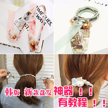 奥酷纳韩版时尚珍珠蝴蝶结碎花丸子头盘发器盘发棒女发饰品6244