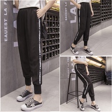 薄款夏季新款运动裤女侧字母高腰雪纺休闲九分裤女宽松束脚灯笼裤