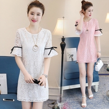 2017夏季新款大码女装韩版宽松胖mm中长款短袖蕾丝衫显瘦连衣裙潮