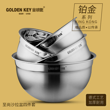 金钥匙不锈钢盆加厚加深料理盆圆形和面打蛋盆洗菜盆调料缸不锈钢