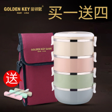 金钥匙304不锈钢多层保温饭盒3层2分格学生便当盒儿童双层餐盒