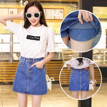 牛仔半身裙女高腰a字短裙2017春夏新款防走光带内衬学生裤裙百搭