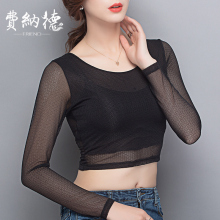 黑色夏装女新款韩国半截半身网纱打底衫长袖内搭性感显瘦t恤上衣