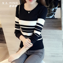 冰丝针织衫2017春装新款韩版女装长袖百搭上衣套头条纹打底毛衣女