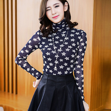 2016秋冬新款百搭上衣 金银丝网纱显瘦韩版 大码高领打底衫女修身