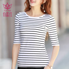自蓝红秋冬条纹打底衫女t恤女士长袖圆领95%棉修身大码女装新款