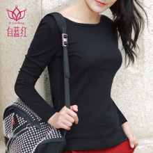 自蓝红黑色长袖女t恤打底衫女韩版秋冬修身一字领棉大码打底秋衣