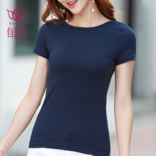 自蓝红白色t恤女短袖夏修身圆领95%棉短款大码运动百搭纯色打底衫