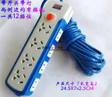 带开关指示灯电源插座 3米5/8米接线板排插板 12插位炫彩蓝色