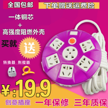 创意大圆盘插板不带线接线板 家用圆形大功率排插 防水防爆插座