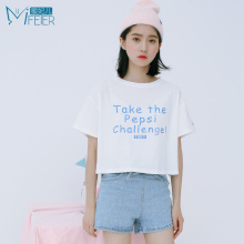 蜜妃儿女装春装2017新款韩版字母印花白色宽松t恤女短袖短款上衣