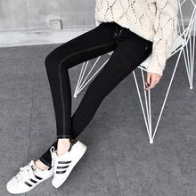 春季新款加绒黑色牛仔裤女加厚九分裤显瘦灰色毛边九分小脚裤