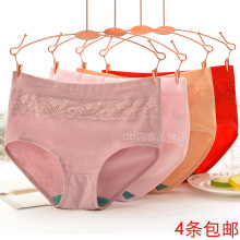 AB内衣品牌正品丝光纯棉高腰大码三角纯色中老年红色内裤女士1822