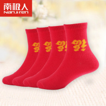南极人大红色纯棉袜子男女童大童本命年秋冬中厚新年喜庆转运红袜