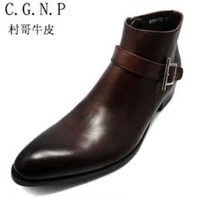 新款高帮靴男士英伦尖头牛皮短靴时尚潮流男靴子高帮正装商务皮鞋