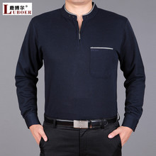 春秋季中年男士薄款立领长袖T恤 中老年体恤爸爸装宽松大码打底衫