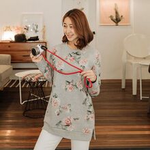 韩国代购女装卫衣秋冬打底衫joamom韩版印花朵T恤长袖体恤中长款