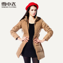 雪中飞2017秋冬新款女修身收腰休闲街头连帽中长款羽绒服X1301100