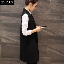 马甲女中长款2016春秋装新款修身显瘦无袖坎肩大码百搭西装外套潮