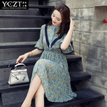 原创主题连衣裙夏季2017新款女学生韩版女装中袖碎花雪纺中长裙子