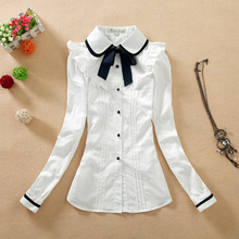 少女款学生装长袖白色衬衫女 英伦学院风淑女蝴蝶结修身打底衬衣