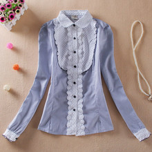 2017春季新款韩版女士蕾丝立领长袖白色衬衫 职业装修身打底衬衣
