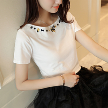 天天特价夏季新款韩版时尚领口刺绣花棉t恤女短袖体恤T修身上衣潮