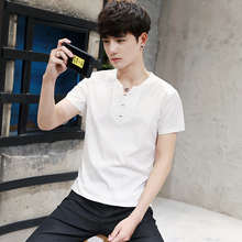 夏装短袖T恤男士圆领纯棉日系V领修身夏季半袖青少年潮流体恤