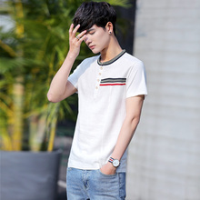 短袖t恤男 2017圆领修身半袖夏季韩版条纹潮t大码打底衫体恤男装