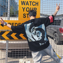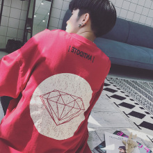 2017新款港仔潮男宽松短袖t恤半袖 情侣装印花图案t恤半袖上衣潮