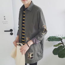 2017春季新款文艺学生宽松衬衫韩版青少年个性中长款长袖衬衣男潮