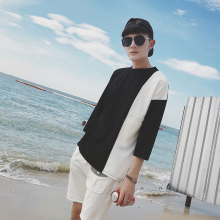 7七分袖T恤男士夏季宽松学生短袖韩版个性潮流BF风中袖日系上衣服