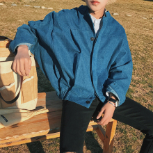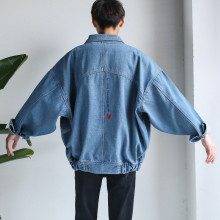 春装新款牛仔上衣青少年学生日系韩版宽松帅气蝙蝠袖潮男夹克外套