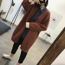 大萌家。韩国单 复古气质宽松翻领双排扣毛衣针织开衫长款外套女