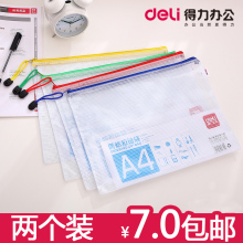 包邮得力A4文件袋 透明网格塑料拉链袋公文袋拉边袋资料袋档案袋