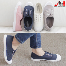 现货韩国代购帆布单鞋女学生一脚蹬浅口低帮小布鞋平底懒人小白鞋