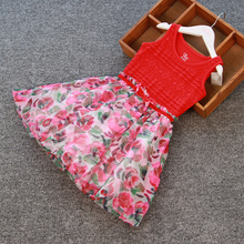 2017夏 出口欧美童装红色蕾丝花朵女童连衣裙公主裙蓬蓬纱裙