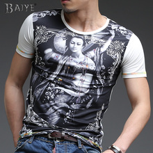 baiye 夏季新款男装圆领男士烫金短袖t恤 纯棉印花上衣修身小衫潮
