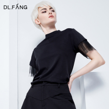 达丽坊2017夏季简约休闲百搭半高领黑色纯色圆领套头短袖T恤女潮
