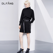 达丽坊2017欧美个性半高领黑色毛衣套头针织衫无袖短款修身线衣女