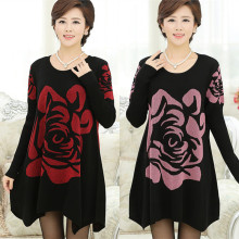 加肥加大码妈妈装200斤羊毛羊绒衫中老年女冬装织衫中长款毛衣裙