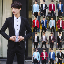 春装新款青少年男装休闲英伦小西装外套 男士纯色修身长袖外衣潮