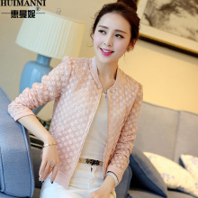 惠曼妮2017春装新款韩版修身长袖圆领蕾丝短外套 女春秋 开衫薄