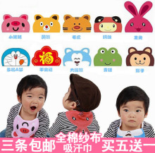 买4送1 婴儿口水巾纯棉双层按扣加厚宝宝三角巾儿童围嘴 2条包邮