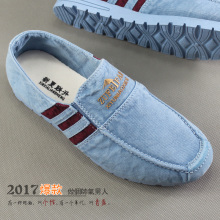 2017新款 老北京布鞋男款牛仔布帆布鞋套脚平底绣花休闲舒适男鞋