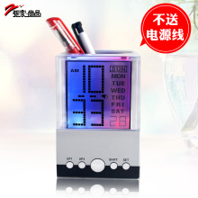 张家尚品创意七彩万年历笔筒闹钟时尚个性办公笔筒多功能电子时钟