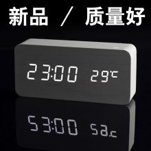 木村学生木头钟静音创意数字闹钟电子座钟时钟夜光声控礼物礼品