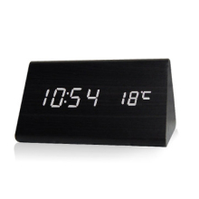 木村木头钟闹钟创意静音夜光可爱时钟电子时尚温度简约声控时尚