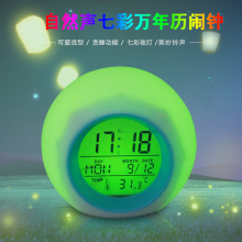 创意七彩自然声圆形万年历闹钟 静音夜光小闹钟 学生儿童床头闹钟